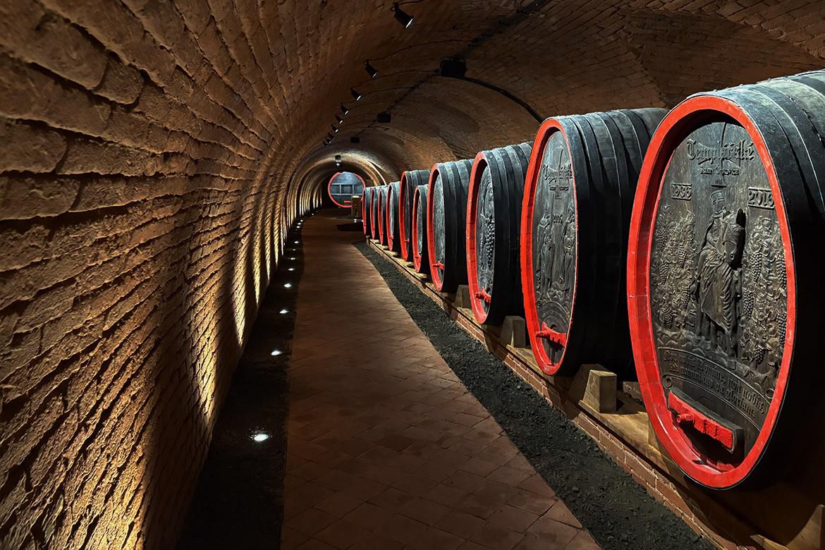 Nejmodernější odpeckovávače a lisy zaručují šetrné zpracování. Naši sklepmistři pak pomocí reduktivní technologie, řízeného kvašení a odbourávání kyselin u vybraných partií připraví mimořádná vína. Jejich kvalitu povýší k dokonalosti zrání v dubových sudech a lahvích ve staletí starých chodbách.