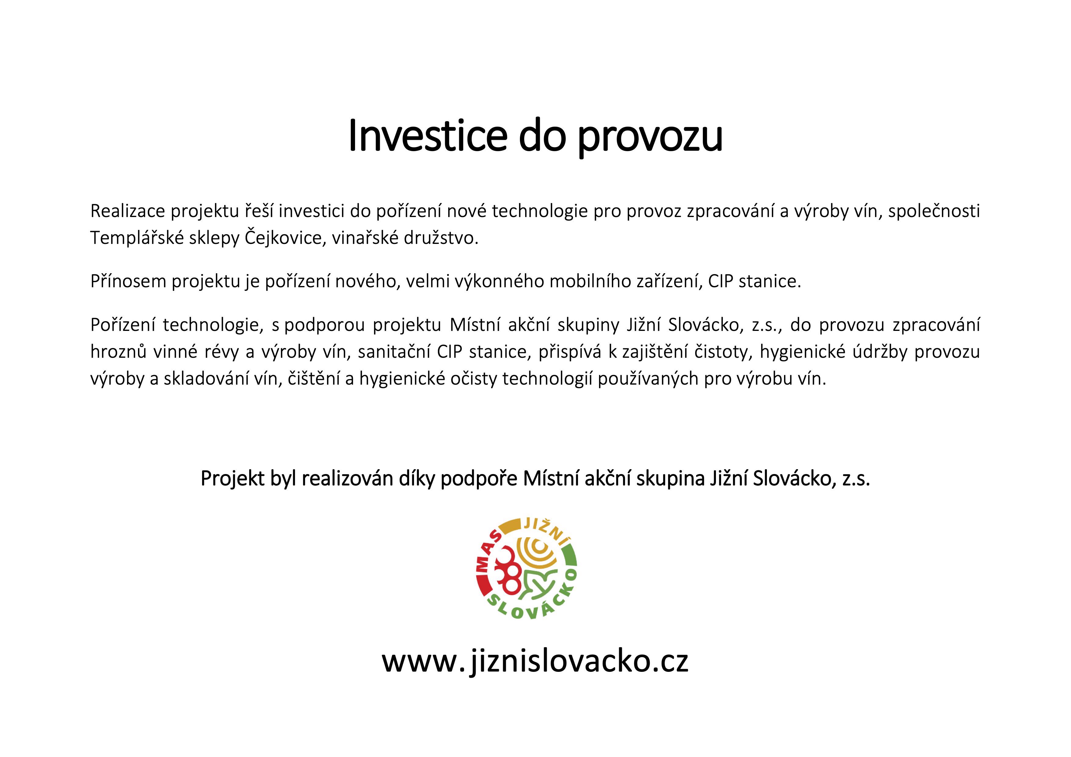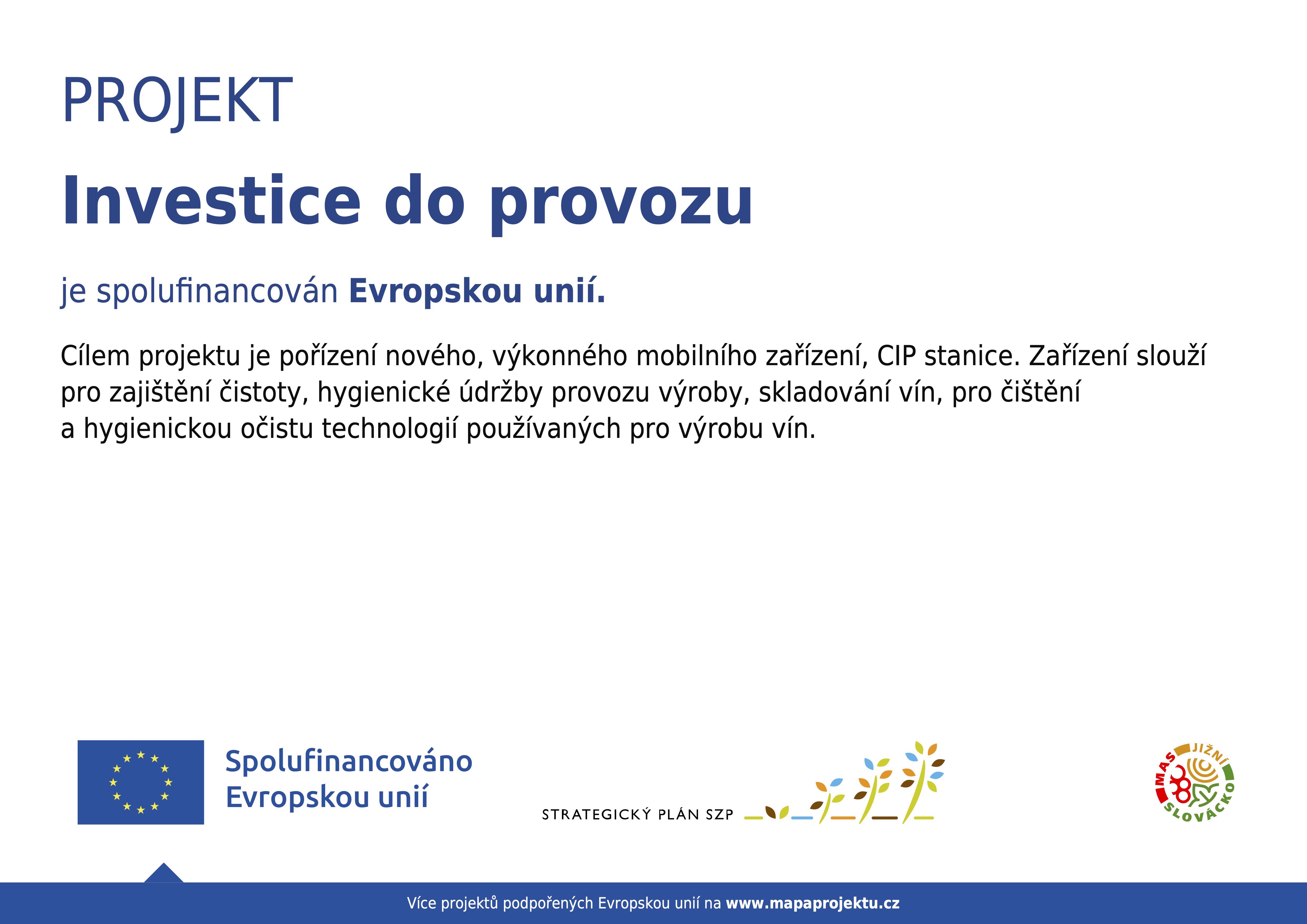 Díky podpoře Místní akční skupiny Jižní Slovácko, z. s., jsme získali dotaci na investice do modernizace technologie zpracování vinné révy a výroby vín.